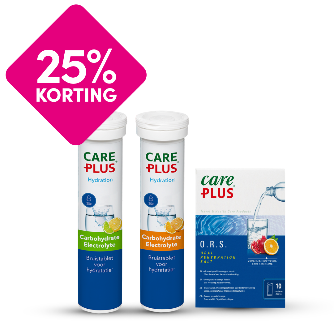 We helpen je graag de juiste keuze te maken. Daarom vind je deze week in de winkel 25% korting op Care Plus hydratatie en O.R.S.