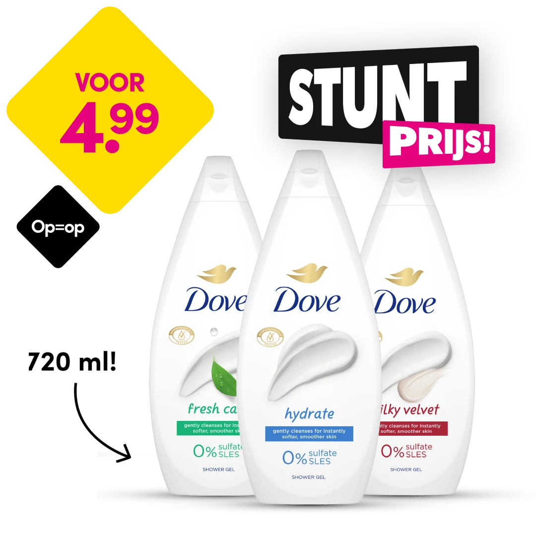 Niets zo lekker als een ontspannende en verfrissende douche. Maar lang en heet douchen kan je huid ook uitdrogen. Zeker in de winter als je veel binnen bent en de lucht droog is. Gebruik dan een verzorgende douchegel van bijvoorbeeld Dove. Met rijke ingrediënten voor een heerlijk, zachte huid. ⁠ Dit ga je fijn vinden. De verzorgende douchegel van Dove voor een super Stuntprijs! Mooie afsluiter van het jaar. Moet je er wel snel bij zijn want op=op! ⁠ Stuntprijs: Dove douchegel 720 ml nu 4.99! Op=op